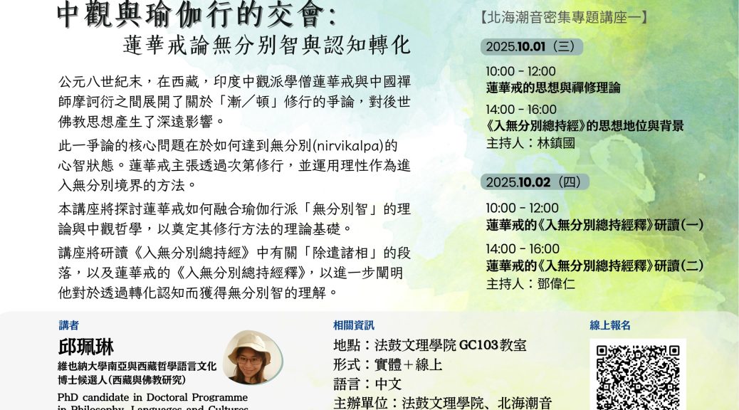 2025【北海潮音密集專題講座(一)】中觀與瑜伽行的交會:蓮華戒論無分別智與認知轉化
