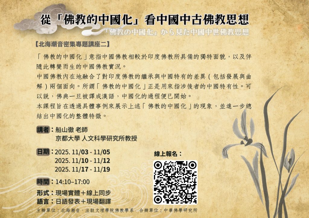 【北海潮音密集專題講座(二)】「佛教の中國化」から見た中國中世佛教思想(”Sinification of Buddhism” in medieval Chinese Buddhism)